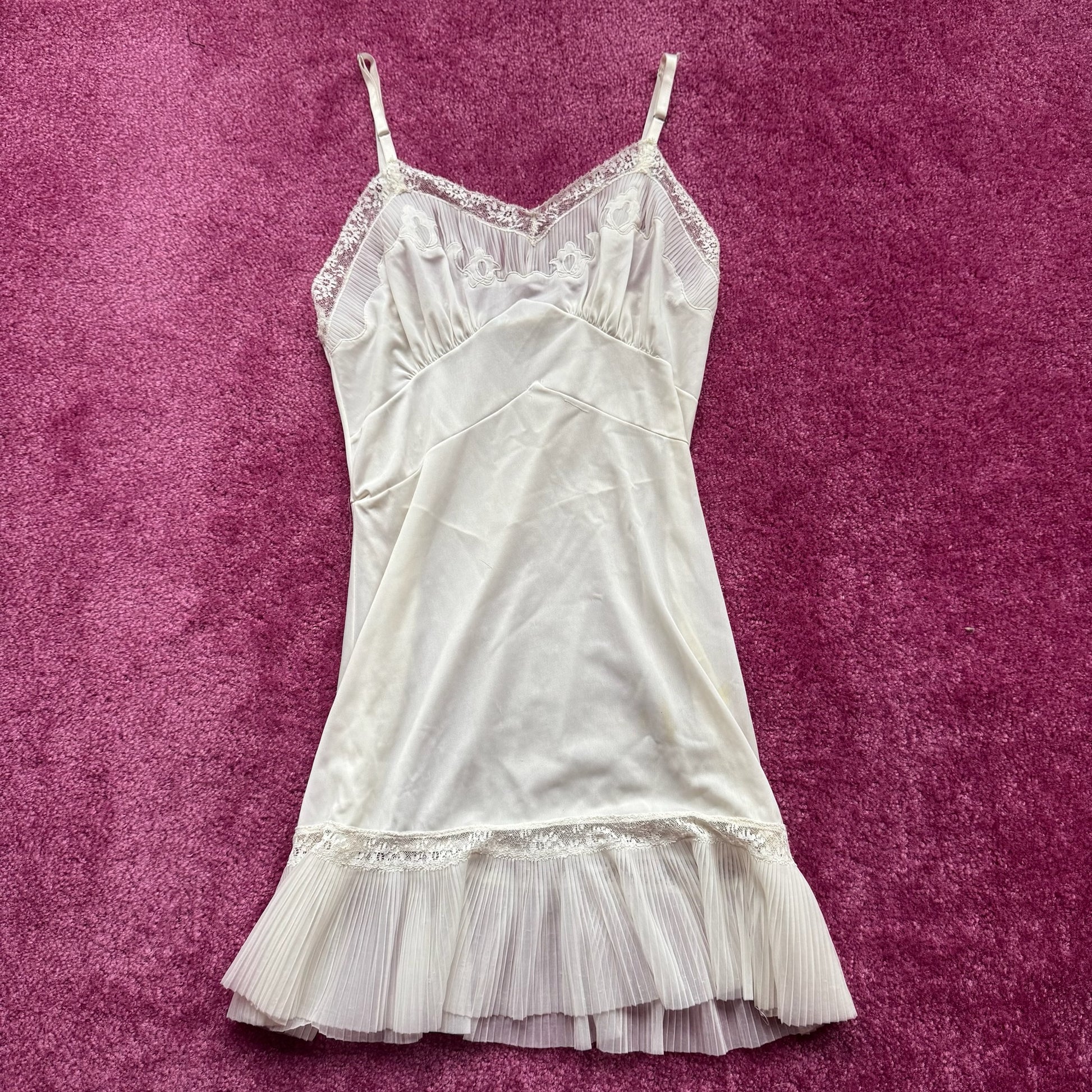 60s White Pleated Hem Dress (S)